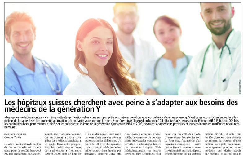 Dès lors, les hôpitaux suisses, pour recruter et fidéliser les collaborateurs issus de la génération Y, nés entre 1980 et 2000, devraient adapter leurs pratiques et leurs politiques en matière de ressources humaines.