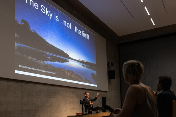 Une diplômée de la HEG-FR a ouvert la session plénière : il s’agit de Johanna Gapany, conseillère aux États pour le canton de Fribourg qui nous a parlé du passé, du présent et de l’avenir, une transition toute trouvée pour évoquer l’intervention d’Olivier de Weck. En effet, le Fribourgeois, professeur d’ingénierie aérospatiale au Massachusetts Institute for Technology (USA), emmenait ensuite le public dans l’espace, assurant que « The sky isn’t the limit » (Le ciel n’est pas la limite).