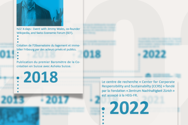 Ce sont 30 ans d'histoire qui sont représentés avec détails et finesses et la magnifique fresque se clôt avec l’introduction d’un centre de recherche spécialisé dans la durabilité, le « Center for Corporate Responsibility and Sustainabilty (CCRS) » fondé par la Fondation « Zentrum Nachhaltigkeit Zürich ». Venez faire connaissance avec les 10m2 de l’histoire de la HEG et découvrez des faits que vous ne connaissiez pas !
