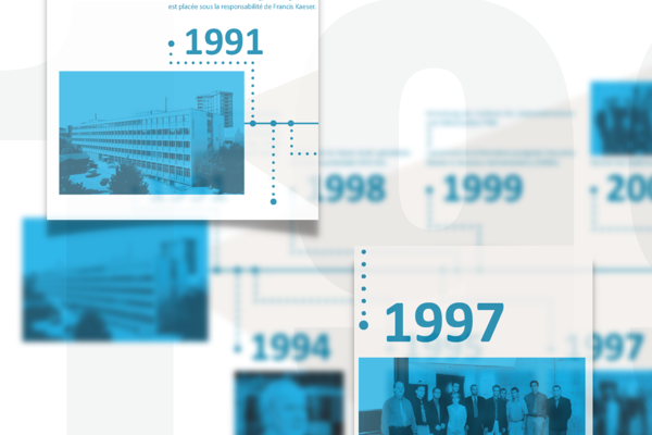 Au rez-de-chaussée de la Haute école de gestion Fribourg, vous pouvez maintenant découvrir une frise historique qui s’étend de 1991 à aujourd’hui contenant tous les moments clés de notre école. Ce sont 9 images illustrées par près de 22 moments forts comme l’entrée en fonction du directeur Lucien Wuillemin en 1994, la première volée EMBA en 2001 ou l’arrivée du directeur actuel Rico Baldegger en 2013.