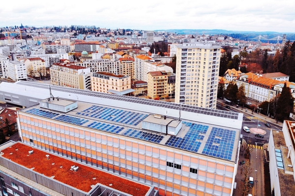 Après plusieurs mois de construction, la nouvelle installation photovoltaïque sur le toit de la Haute école de gestion Fribourg est opérationnelle depuis fin 2019.