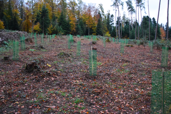 Ces jeunes pousses sont destinées à repeupler un trou laissé par l'abattage de plusieurs épiceas attaqués par le bostryche, une espèce d'insectes friande de cette essence d'arbre. À cause du réchauffement climatique, les épiceas ne sont plus assez forts pour se défendre contre ces petits envahisseurs et sèchent très vite.