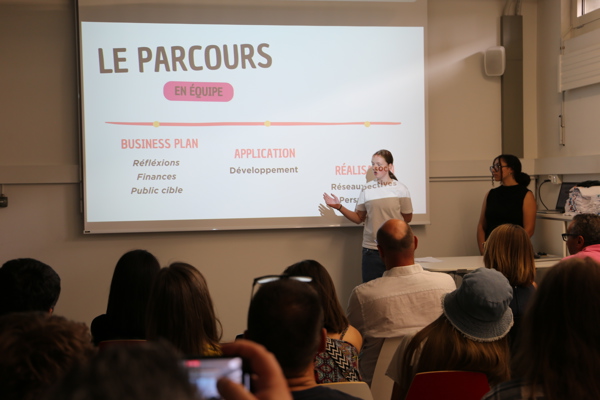 Cinq projets ont été développés puis présentés en public le vendredi après-midi, devant une soixantaine de personnes: proches, partenaires et curieux réunis au sein de l’Innovation Lab. Une occasion pour les jeunes de valoriser leur travail et de vivre une expérience concrète de prise de parole en public.