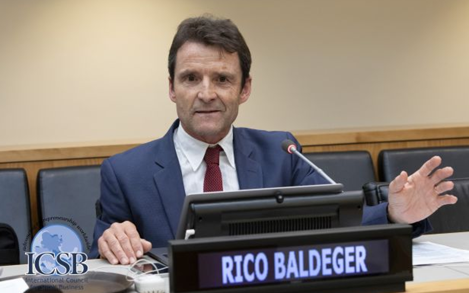 Rico Baldegger speaks at the 2018 ICSB and UN Forum for Entrepreneurs and Micro-, Small and Medium-Sized Enterprises