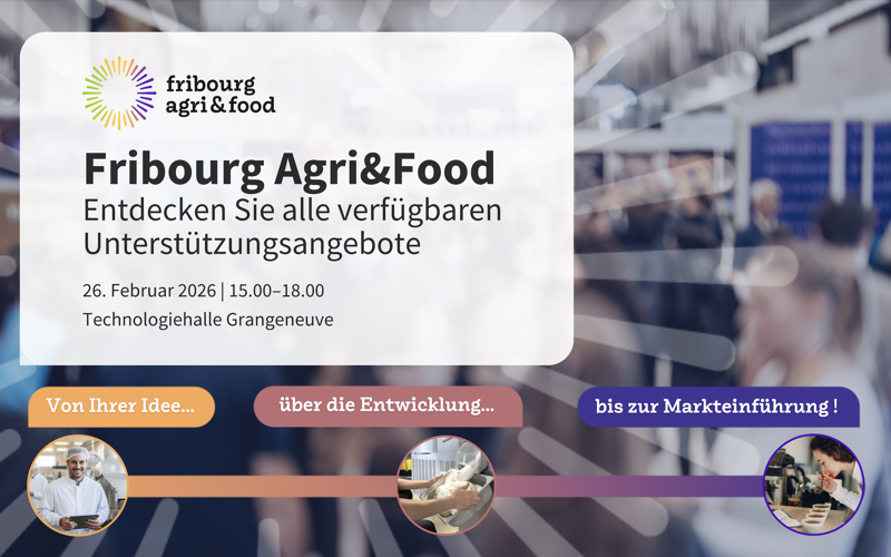 Le 26 février 2026, venez découvrir tous les soutiens disponibles de Fribourg Agri&Food pour vos projets agroalimentaires: stands, démonstrations, dégustations et experts de la filière agroalimentaire à votre disposition pour accompagner vos projets, de l'idée à la mise sur le marché.