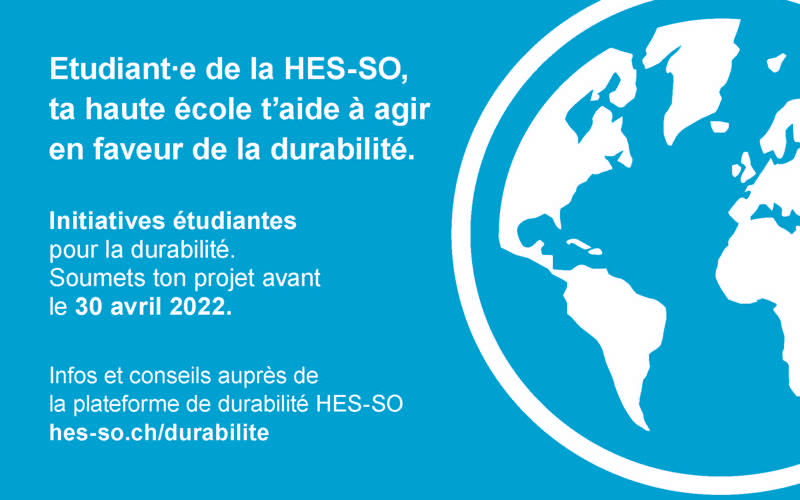 Ces appels à projets sont financés grâce à des fonds du programme U Change, du Rectorat et des hautes écoles de la HES-SO participantes. Ils s’alignent sur le cadre des appels à projets U Change. La Plateforme de durabilité de la HES-SO, ainsi que le réseau des facilitatrices et facilitateurs durabilité des hautes écoles, sont à disposition des étudiant∙es pour les aider à élaborer leur projet et à constituer le dossier à soumettre jusqu'au 30 avril 2022.