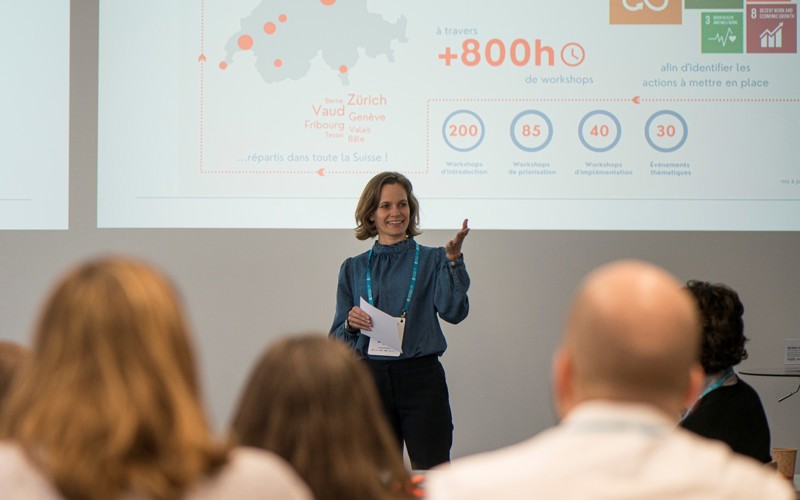 L’après-midi a commencé par une introduction au programme Swiss Triple Impact par Maryline Dafflon, la coordinatrice pour la plateforme pour Fribourg et Neuchâtel. Le programme STI permet aux entreprises suisses de mesurer leur contribution aux ODD (Objectifs de Développement Durables) et d’améliorer leur performance en matière de développement durable.