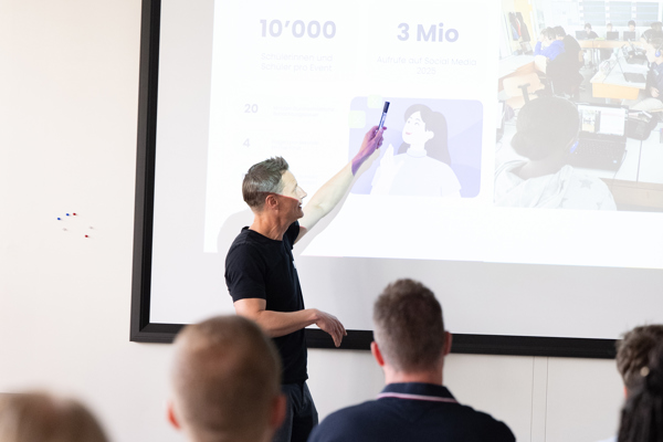 Im Mittelpunkt des Abends stand das Fachreferat von Michael Raaflaub, Bachelor Alumnus der HSW Freiburg und Co-Founder von Lehrberufe Live!, der eindrucksvoll die Funktionsweise des Lehrstellennetzes und der Plattform Lehrberufe Live! präsentierte. Raaflaub veranschaulichte, wie das Netzwerk die Brücke zwischen Schule und Beruf baut, Jugendliche während der Berufswahlphase individuell begleitet und Lehrbetriebe gezielt in Zeiten des Fachkräftemangels unterstützt. Lehrberufe Live! ermöglicht jungen Menschen durch Livevideos von Lehrlingen praxisnahe Einblicke in verschiedene Berufsbilder, auch in weniger bekannte Bereiche, und trägt zur Chancengleichheit bei. Darüber hinaus werden Lehrabbrüche durch frühzeitige Information vermindert. Ein Netzwerk aus mehr als 100 Partnern und Mitgliedern sowie eine Finanzierung durch Beiträge und öffentliche Unterstützung bilden das Fundament des Lehrstellennetzes.